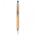 Bambusowy długopis Eco Line z kolorowym rysikiem do ekranów dotykowych i metalowym klipsem. Srebrny przycisk, klips i końcówka. Wkład jumbo 1,0 mm z niebieskim tuszem.
