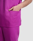 Model unisex z krótkim rękawem i dekoltem w serek. Kieszonka na prawej piersi, dwie kieszonki boczne oraz szwy boczne zapewniające lepsze dopasowanie.