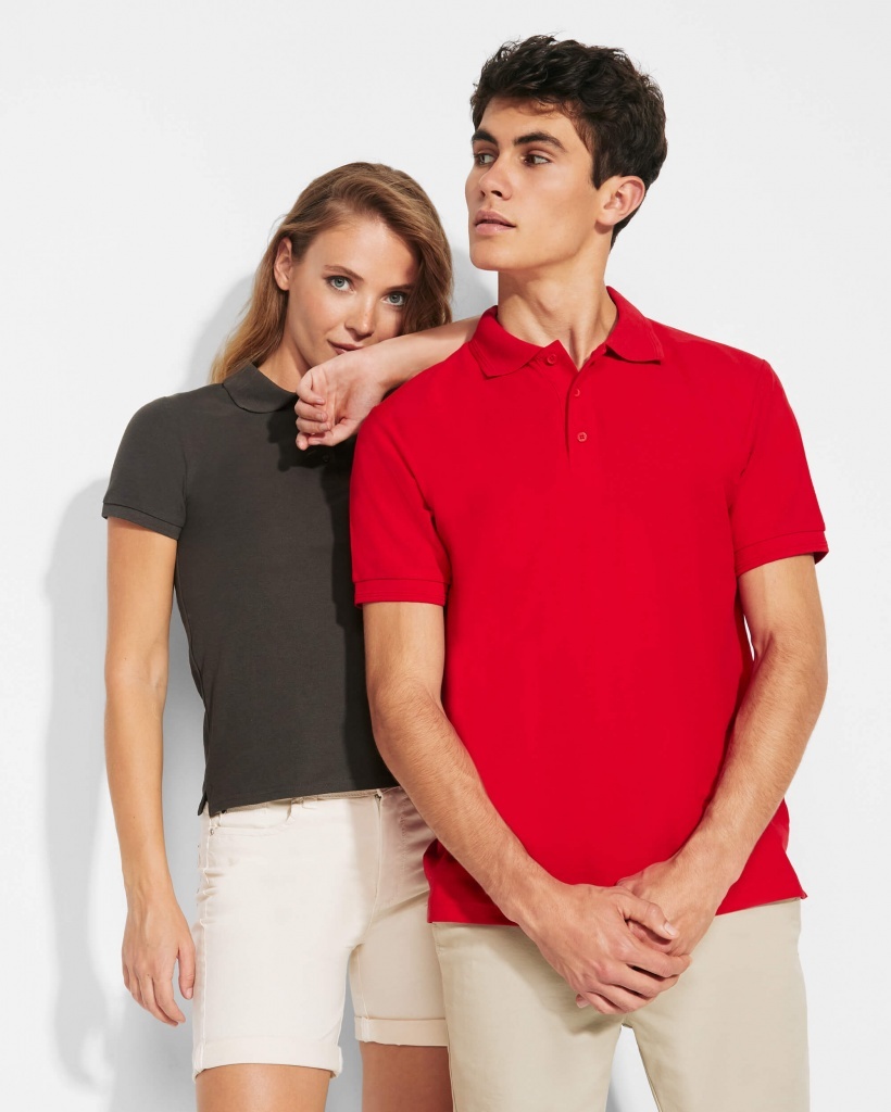 Klasyczna koszulka polo z zapięciem na trzy guziki. Prążkowany kołnierzyk i mankiety, wzmocnione kryte szwy przy kołnierzyku oraz możliwość wyposażenia w kieszeń.
