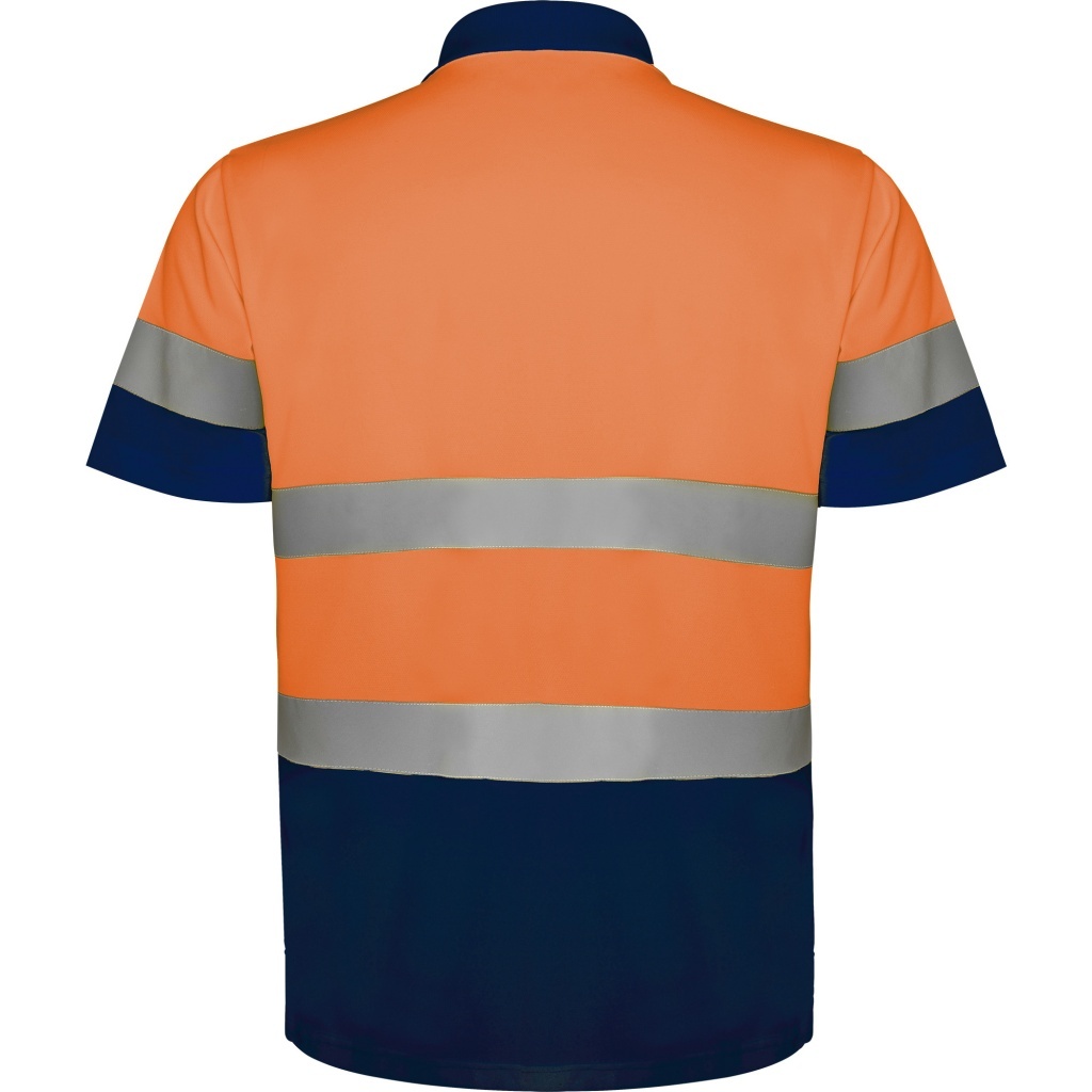 Techniczna, dobrze widoczna koszulka polo z krótkimi rękawami, zaprojektowana z kołnierzem prążkowanym 1x1, zapięciem na 3 guziki oraz dwoma poziomymi paskami o wysokiej widoczności na piersi i rękawach. Materiał odporny na zaciągnięcia zapewnia trwałość podczas intensywnego użytkowania.