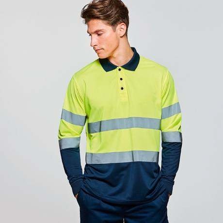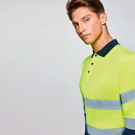 Wysokiej widoczności, techniczna koszulka polo z długim rękawem, zaprojektowana z myślą o bezpieczeństwie i komforcie podczas pracy.