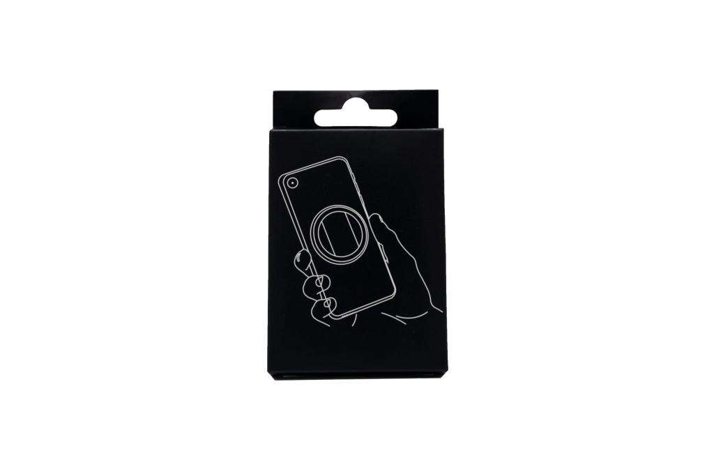Praktyczny uchwyt na telefon, kompatybilny z każdym dostępnym na rynku smartfonem. Wyposażony w silikonowy pasek, który zapewnia pewne trzymanie urządzenia palcem. Uchwyt posiada magnes, dzięki czemu umożliwia wygodne zamocowanie telefonu na lodówce lub na uchwycie samochodowym.