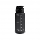 Półprzezroczysta butelka z tworzywa Tritan, wyposażona w wygodny uchwyt do przenoszenia oraz praktyczny wskaźnik poziomu płynu i oznaczenia ułatwiające kontrolę nawodnienia.