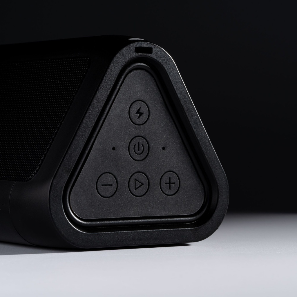 Bezprzewodowy głośnik wykonany z aluminium.