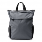 Plecak zewnętrzny wykonany ze skóry PU, zamykany zamkiem błyskawicznym. Posiada przestronną główną komorę z odpinaną kieszenią na laptop o przekątnej 15 cali, zewnętrzną klapę z podwójną kieszenią zapinaną na zamek oraz dwie boczne kieszenie z siatki. Wyściełane uchwyty i tylną część plecaka.