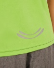 T-shirt techniczny z raglanowymi rękawami. Kontrastowe przeszycia na mankietach, w pasie, przy kołnierzyku oraz po bokach. Karczek wykończony tym samym materiałem. Oddychająca tkanina, łatwa w praniu i suszeniu. Odblaskowe detale.