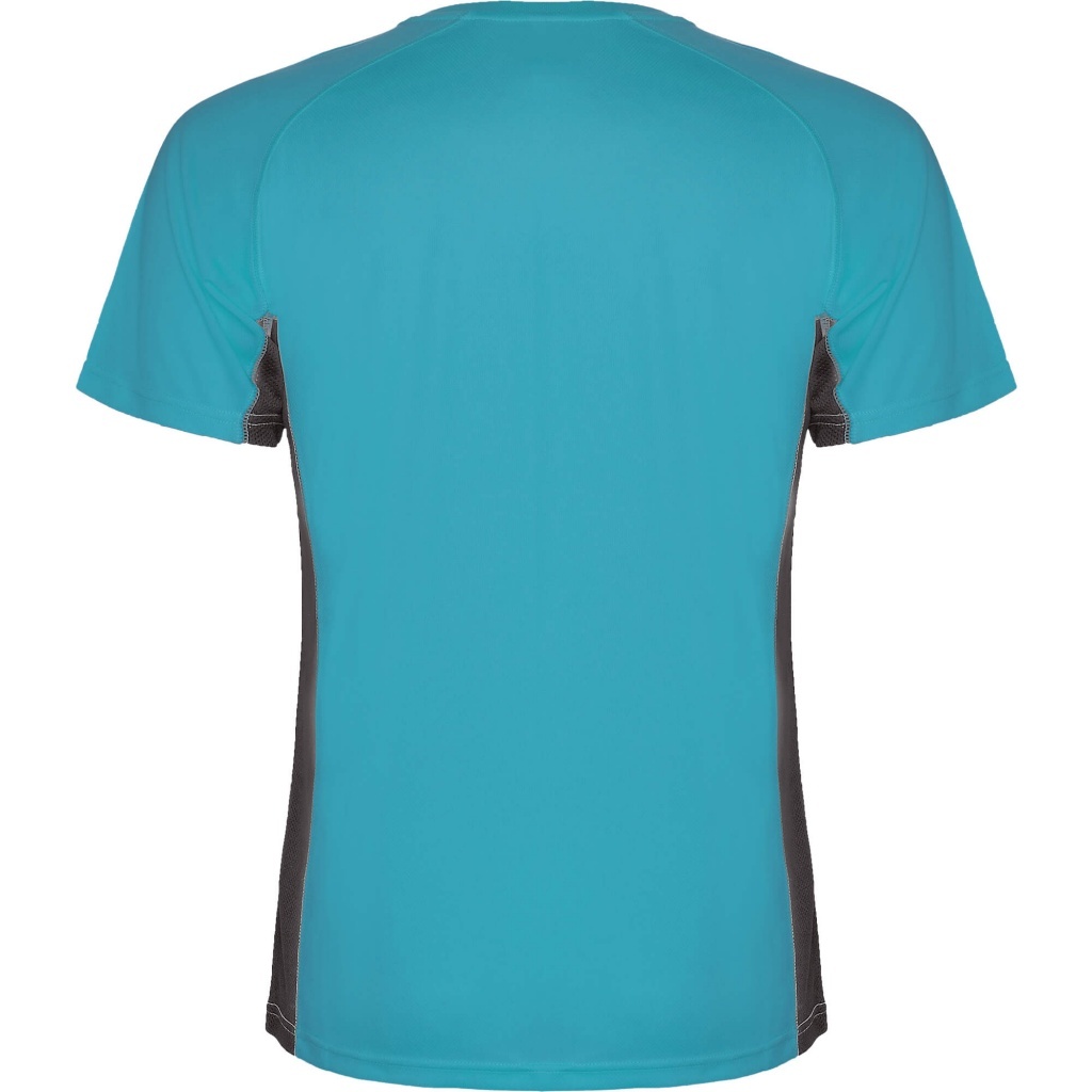 Dwukolorowa koszulka techniczna z krótkimi raglanowymi rękawami. Panele boczne i pachy wykonane z mikroperforowanej tkaniny. Okrągły dekolt wykończony wzmocnionymi, krytymi szwami. Przyjemna w dotyku tkanina o dopasowanym kroju.