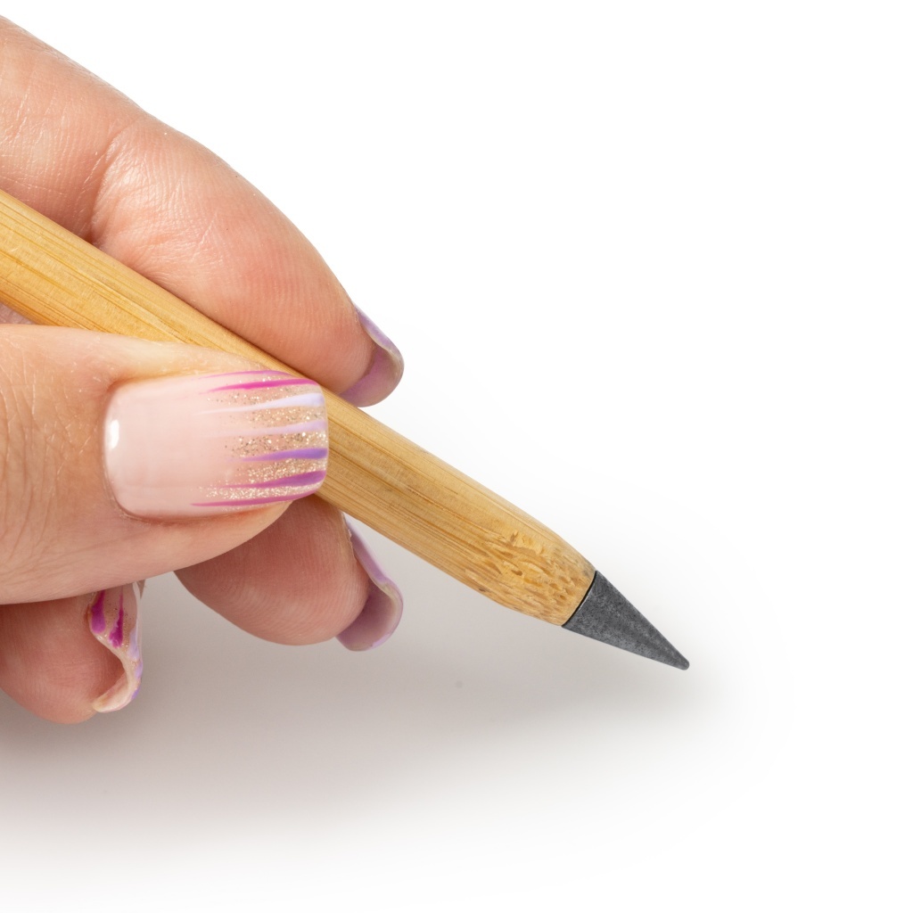 Wieczny ołówek z korpusem z bambusa. Ołowiana końcówka umożliwia nieprzerwane pisanie — bez konieczności ostrzenia.