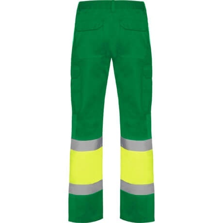 4. Dwukolorowe spodnie wykończone odblaskowymi pasami.