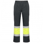 4. Dwukolorowe spodnie wykończone odblaskowymi pasami.