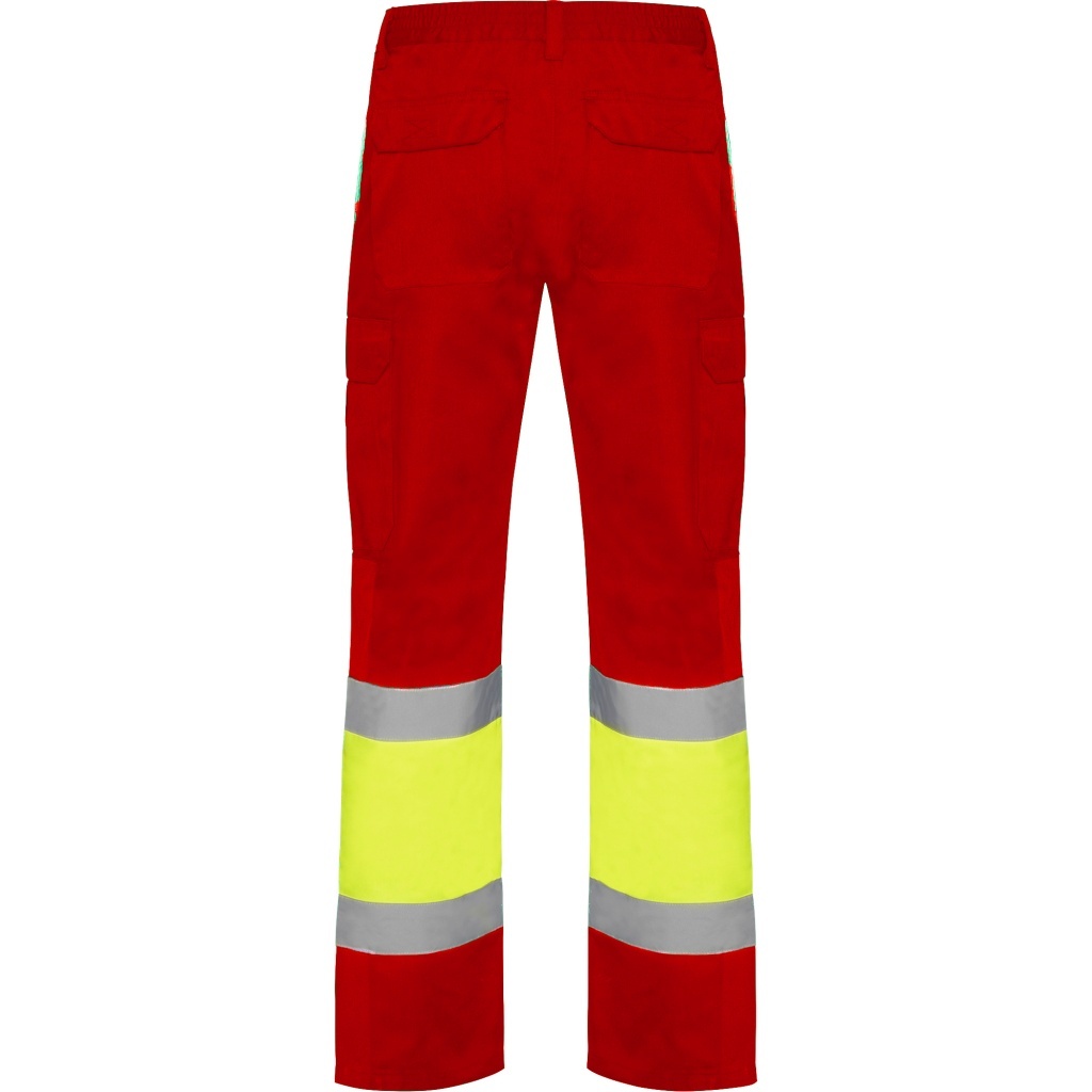 4. Dwukolorowe spodnie wykończone odblaskowymi pasami.