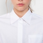 Damska koszula z długim rękawem o dopasowanym kroju. Zaszewki z przodu i z tyłu zapewniają schludny fason, kieszeń na lewej piersi oraz plisa zakrywająca guziki. Mankiet zapinany na dwa guziki. Łatwa w pielęgnacji.