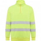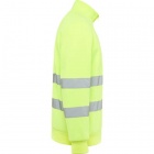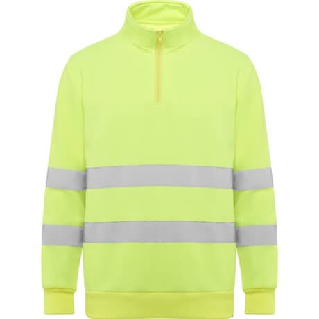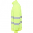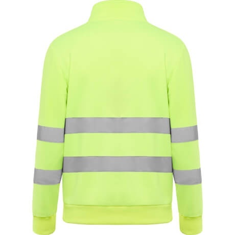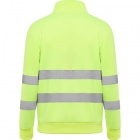 Bluza o wysokiej widoczności zapinana na zamek błyskawiczny, z wysokim kołnierzem wyposażonym w osłonę podbródka oraz ściągaczem.