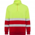 Bluza o wysokiej widoczności zapinana na zamek błyskawiczny, z wysokim kołnierzem wyposażonym w osłonę podbródka oraz ściągaczem.