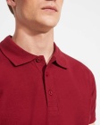 Koszulka polo z krótkim rękawem. Wzmocnione, kryte szwy przy kołnierzyku. Prążkowany kołnierzyk i mankiety. Szwy boczne. Zapięcie na trzy guziczki. Rozcięcia po bokach.