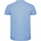 Koszulka polo z krótkim rękawem. Wzmocnione, kryte szwy przy kołnierzyku. Prążkowany kołnierzyk i mankiety. Szwy boczne. Zapięcie na trzy guziczki. Rozcięcia po bokach.