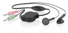Doskonale brzmiące słuchawki douszne ze zintegrowanym mikrofonem i zwijanym przewodem — wygodne do użycia z telefonem lub przenośnym komputerem; idealne do komunikatorów internetowych.