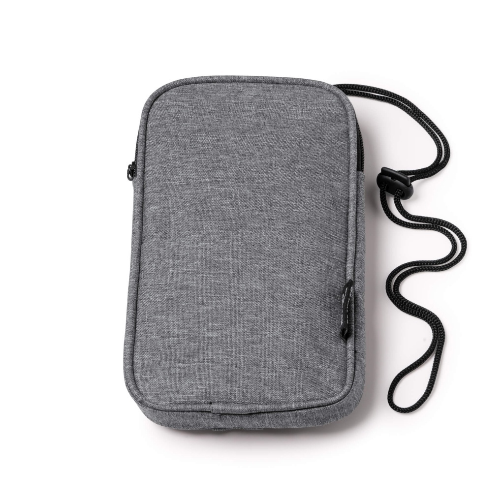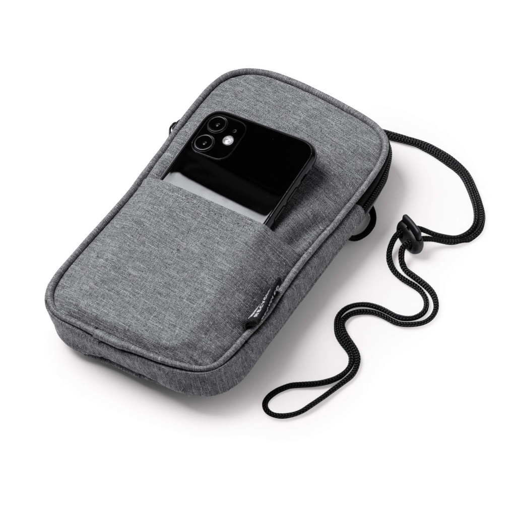 Mobilna torebka wykonana z poliestru RPET. Główna komora zapinana na zamek błyskawiczny. Zewnętrzna kieszeń. W zestawie pasujący pasek na ramię.
