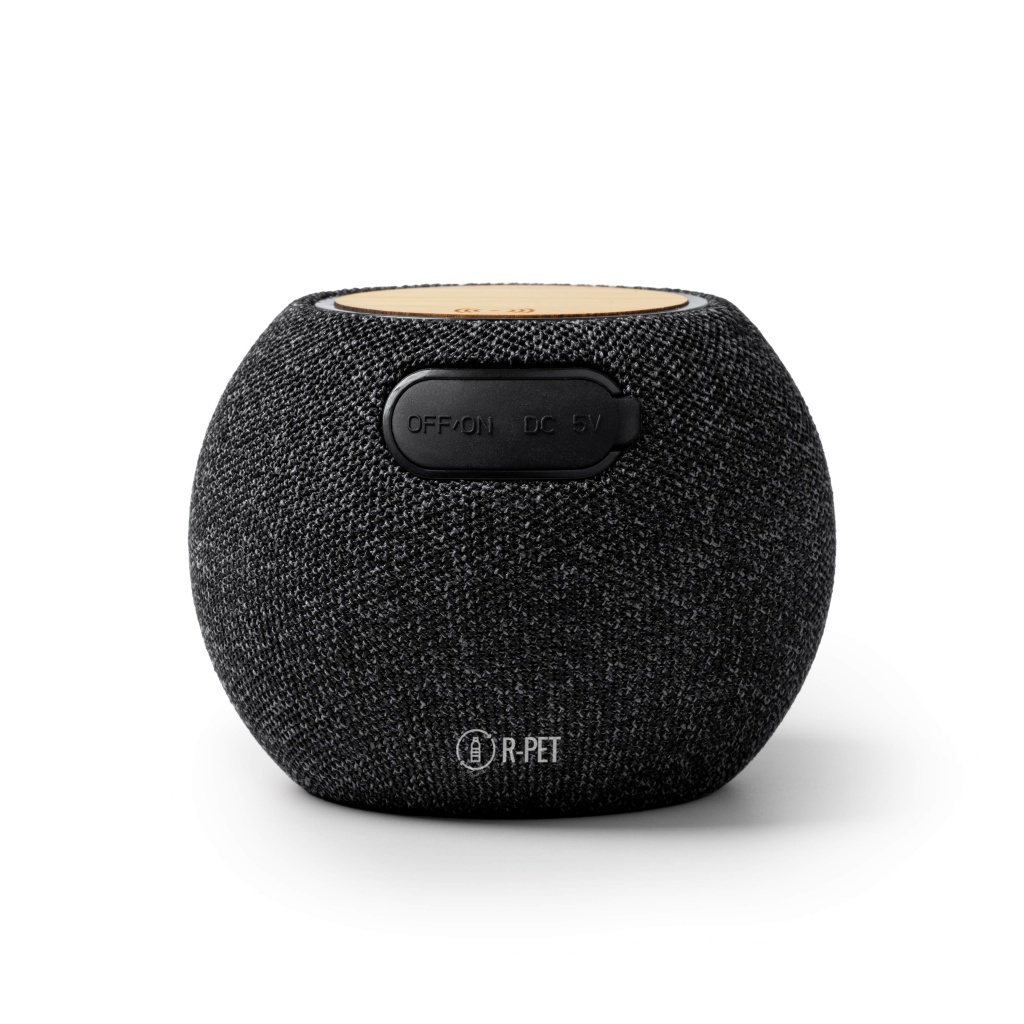 Bezprzewodowy głośnik o okrągłej obudowie wykonanej z bambusa i poliestru RPET, o mocy 5W. Zawiera także bezprzewodową ładowarkę o mocy 15 W. Całość zapakowana w ekologiczne pudełko — doskonały wybór dla osób ceniących zrównoważony rozwój i elegancki design.