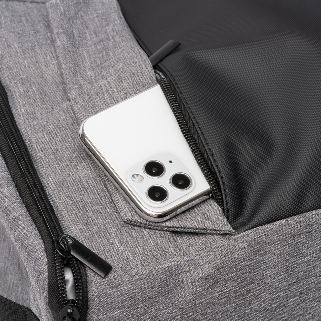 Termiczna torba z zewnętrzną powłoką ze skóry PU i tkaniny 300D RPET, wyposażona w izotermiczne wnętrze. Posiada obszerną komorę główną oraz zewnętrzną kieszeń zamykaną na zamek błyskawiczny. Uchwyt ze wzmocnieniem oraz regulowany pasek ułatwiają przenoszenie.
