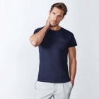 Koszulka z kieszonką. Czterowarstwowy, okrągły kołnierz. Wzmocnione, kryte szwy przy kołnierzyku i na ramionach. Szwy boczne.