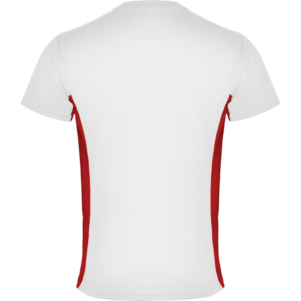 Dwukolorowa koszulka techniczna z krótkim rękawem. Okrągły kołnierzyk, kryte szwy wokół karczku. Kontrastowe wstawki po bokach. Materiał łatwy w praniu, szybkoschnący i oddychający.