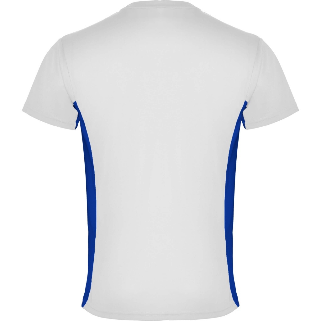 Dwukolorowa koszulka techniczna z krótkim rękawem. Okrągły kołnierzyk, kryte szwy wokół karczku. Kontrastowe wstawki po bokach. Materiał łatwy w praniu, szybkoschnący i oddychający.