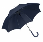 Automatyczny parasol z prostą sztycą i plastikową, zakrzywioną rączką w kolorze dopasowanym do czaszy.