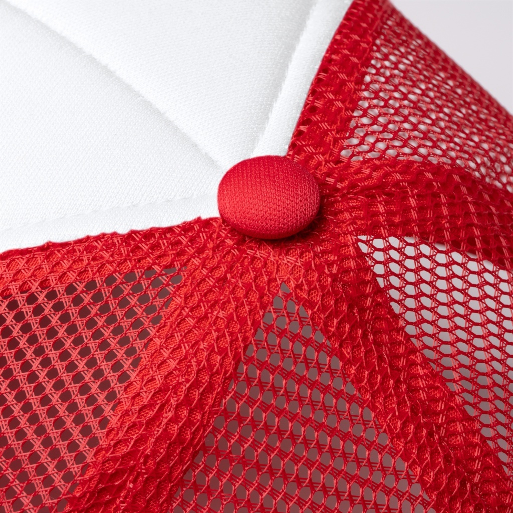 5-panelowa czapka z daszkiem wykonana z poliestru, z przednim panelem podszytym w kolorze białym. Tył wykonany z siatki oraz możliwość regulacji zapięcia.