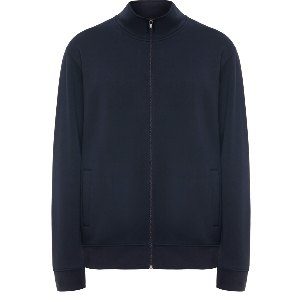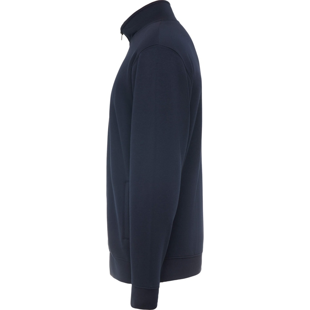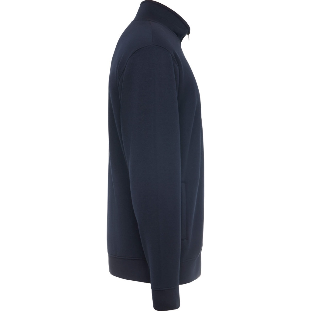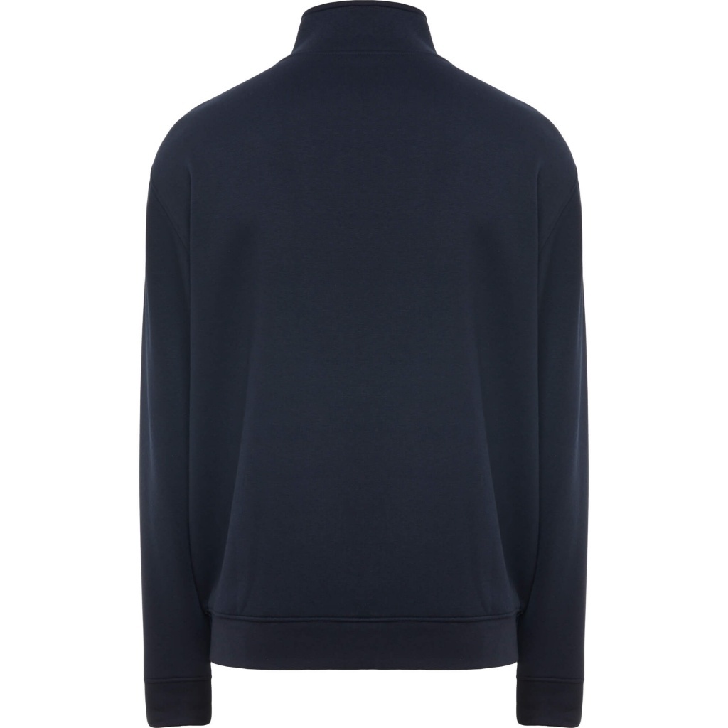 Bluza z wysokim kołnierzem zapinana na niezawodny, kolorystycznie dopasowany zamek błyskawiczny. Wnętrze kołnierza w tym samym odcieniu z dodatkowo wzmocnioną obwódką. Mankiety i pas wykonane z prążkowanej dzianiny 1x1.