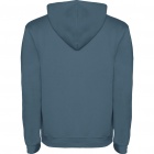 Bluza z kapturem wykonana z podwójnej tkaniny, ze sznurkowym ściągaczem. Kieszeń typu kangurka. Elastyczne ściągacze przy mankietach i w pasie.