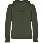 Bluza z kapturem o dopasowanym kroju. Kontrastowe wykończenie wnętrza kaptura oraz dopasowany kolorystycznie sznurkowy ściągacz. Kieszeń typu kangurka. Wzmocnione szwy na karku. Elastyczne ściągacze mankietów i talii wykończone lamówką 1x1.