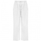 Długie spodnie unisex o prostym kroju nogawki. Pas z gumką, zapinany na guzik i zamek. Tylnia kieszeń.