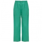 Długie spodnie unisex o prostym kroju nogawki. Pas z gumką, zapinany na guzik i zamek. Tylnia kieszeń.