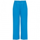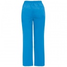 Długie spodnie unisex o prostym kroju nogawki. Pas z gumką, zapinany na guzik i zamek. Tylnia kieszeń.