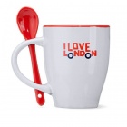 Kubek ceramiczny 350 ml z dołączoną łyżeczką wykonaną z ceramiki, dopasowaną kolorem do wnętrza kubka.