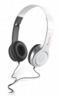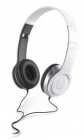 Składane, przewodowe słuchawki o smukłej konstrukcji, wyposażone w wygodne nauszniki i błyszczące wykończenie.