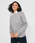 Kolor szary melanż: 53% bawełna organiczna / 40% poliester z recyklingu / 7% wiskoza.