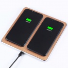 Elegancka drewniana ładowarka bezprzewodowa o podwójnym wyjściu (5 W). Umożliwia jednoczesne ładowanie dwóch urządzeń — wystarczy położyć je na płycie ładującej (Qi).