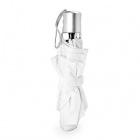 Składany parasol z dopasowanym pokrowcem. Rękojeść, żebra i zakończenie w kolorze srebrnym. Zapięcie na rzep oraz ręczny mechanizm otwierania.