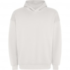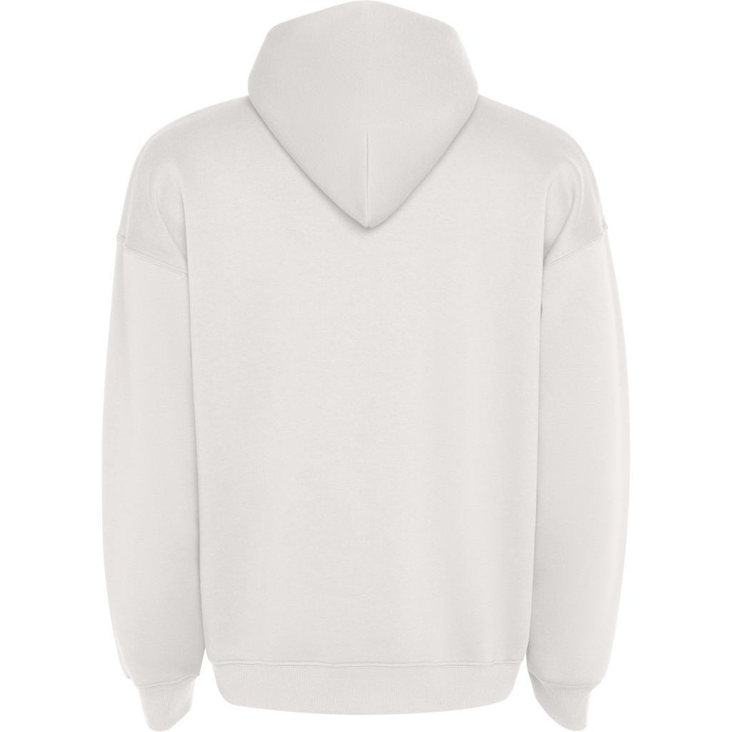 Uniseksowa bluza dresowa w kroju oversize, z kapturem wykończonym tą samą tkaniną. Na karku miękka taśma kryjąca przeszycie. Dwie kieszenie boczne. Mankiety i obszycie z prążków 2x1.