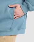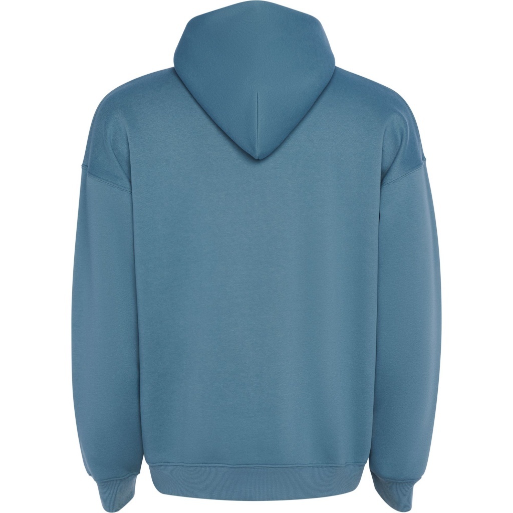 Uniseksowa bluza dresowa w kroju oversize, z kapturem wykończonym tą samą tkaniną. Na karku miękka taśma kryjąca przeszycie. Dwie kieszenie boczne. Mankiety i obszycie z prążków 2x1.