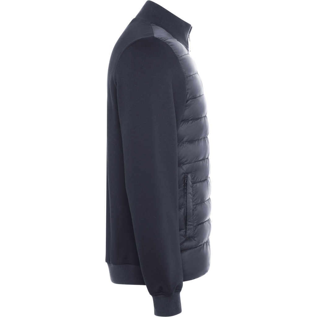 Uniwersalna kurtka z zamkiem błyskawicznym, łącząca wyściełany przód z miękkim, szczotkowanym polarem na rękawach i plecach.