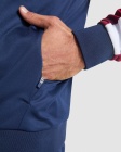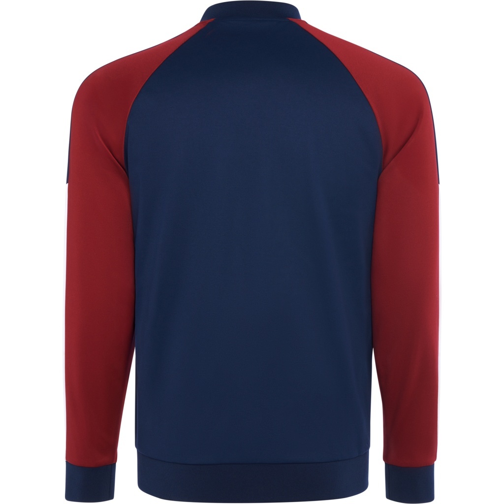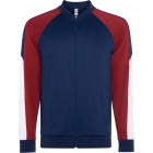 Bluza sportowa z rękawami typu raglan, zapinana z przodu na zamek błyskawiczny. Wyposażona w dwie boczne kieszenie zamykane na zamek błyskawiczny. Prążkowany kołnierz, mankiety i obszycie 1x1. Miękka, kontrastowa taśma kryjąca przeszycie na karku. Rękawy w kontrastowych kolorach z paskami wzdłuż rękawa.