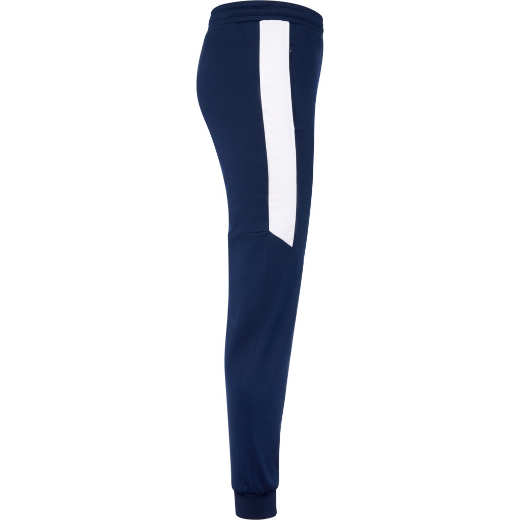 Spodnie dresowe z elastyczną taśmą w pasie i regulowanym ściągaczem. Boczne kieszenie zapinane na zamek błyskawiczny. Kontrastowa taśma boczna sięgająca do połowy nogawki oraz panele na wysokości kolan.