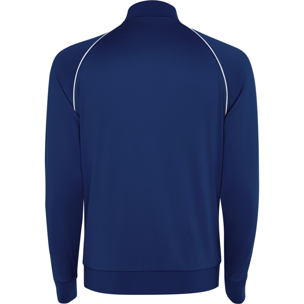Sportowa bluza z wysokim kołnierzem, raglanowymi rękawami oraz przednim zamkiem błyskawicznym. Wykończenia prążkowane 1x1 na stójce i mankietach. Miękka taśma kryjąca przeszycie na karku z materiału głównego. Tylny dekolt i mankiety wykonane z tkaniny głównej. Odblaskowe lamówki na raglanowych szwach z przodu i z tyłu.