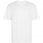 Gruba koszulka w kroju oversize z krótkim rękawem. Szeroki, prążkowany, okrągły dekolt 2x1. Taśma kryjąca przeszycie na karku wykonana z pasującej tkaniny. Rękawy i obszycia wykończone szerokimi, podwójnymi szwami.