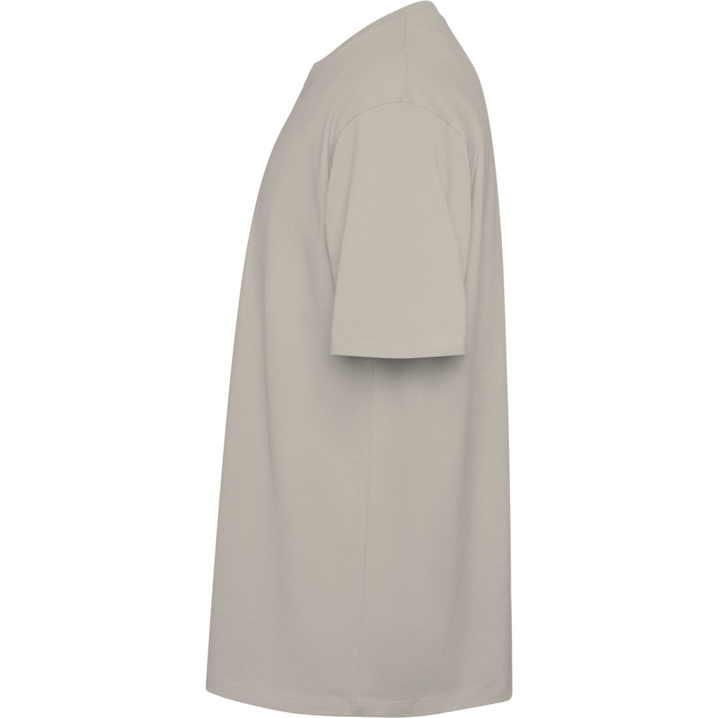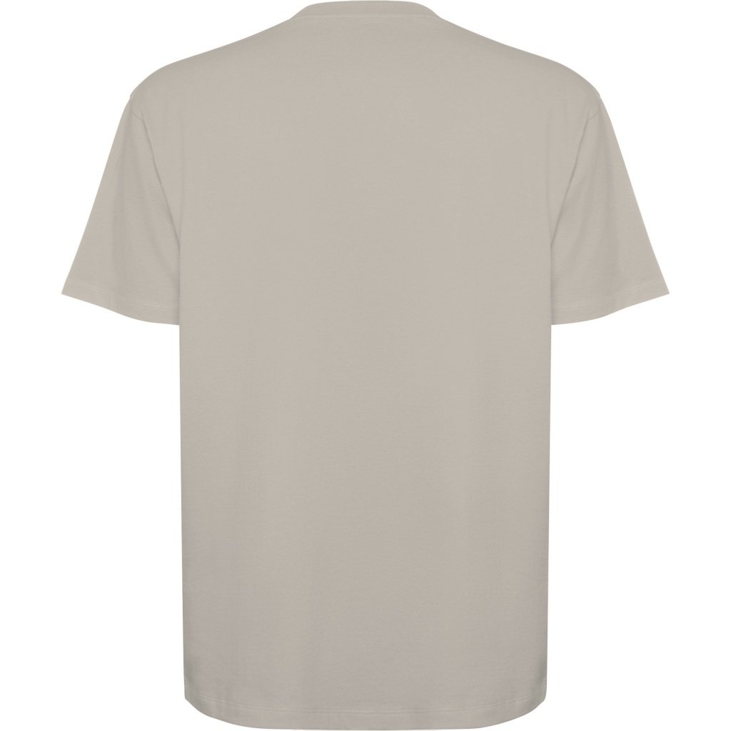 Koszulka o kroju oversize z krótkim rękawem. Okrągły dekolt wykończony ściągaczem 2x1, ze szwami przykrytymi materiałem w tym samym kolorze. · Boczne szwy. Szerokie, podwójne przeszycia na rękawach i obszyciu.