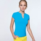 Dopasowany krój z okrągłym dekoltem. Rozcięcie przy kołnierzyku. Podcięte półrękawki. Szwy boczne.