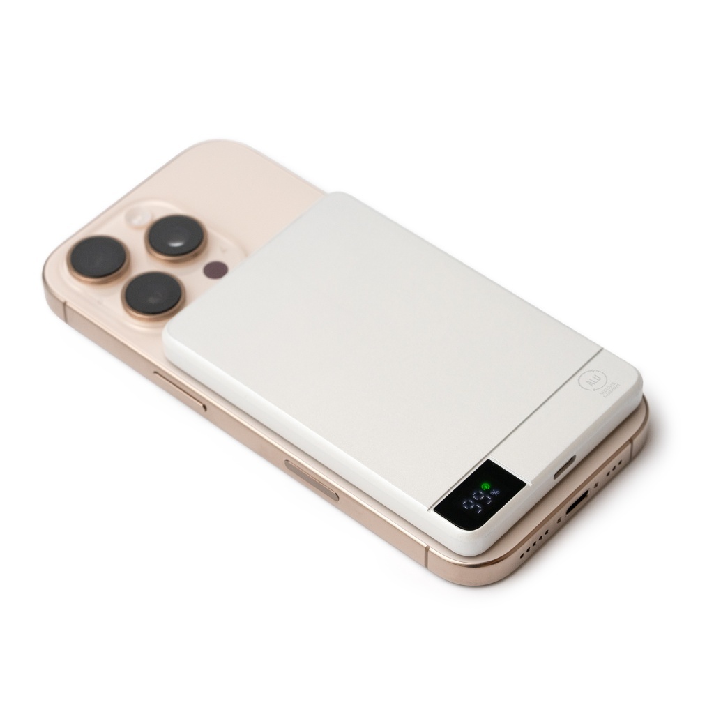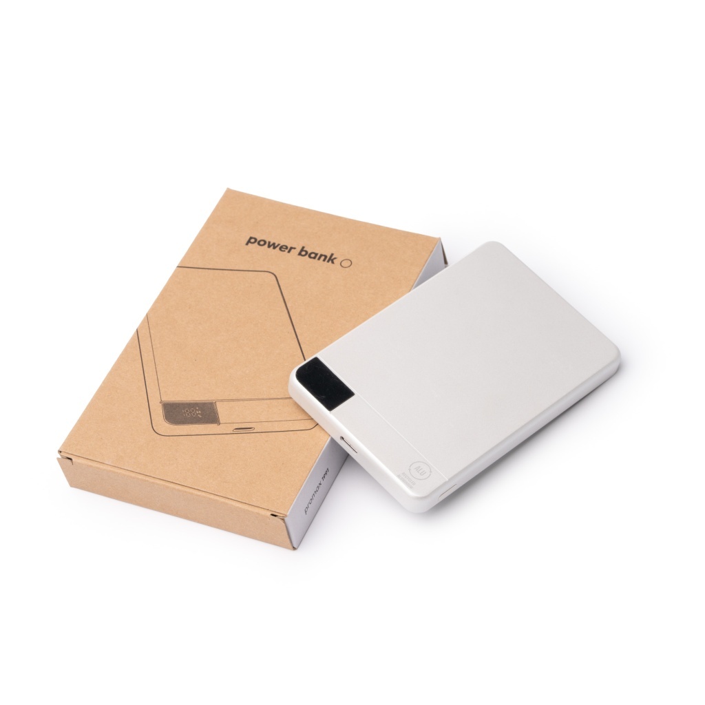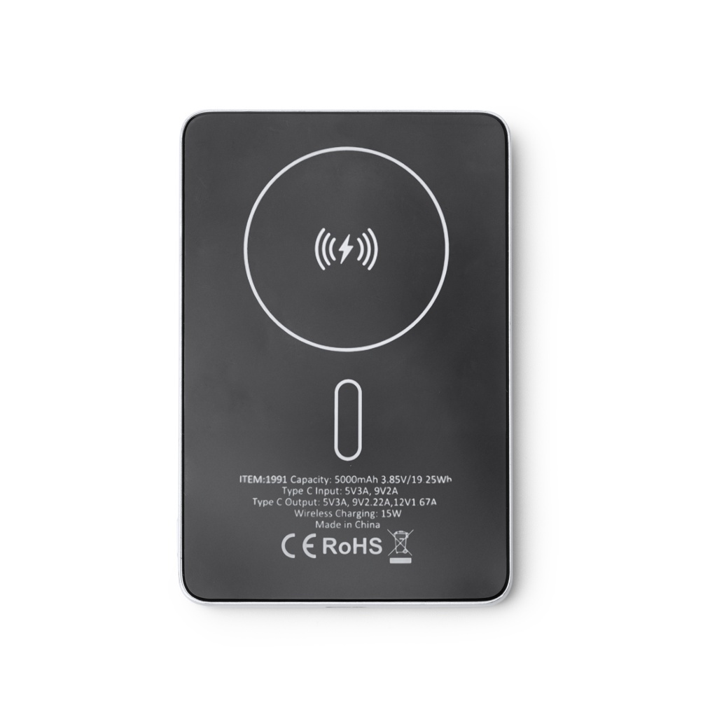 Magnetyczny powerbank o pojemności 5000 mAh. Korpus wykonany z aluminium pochodzącego z recyklingu. Wyjście przewodowe obsługuje moc do 20 W, a ładowanie bezprzewodowe oferuje szybkie ładowanie 15 W dla kompatybilnych urządzeń. Urządzenie wyposażone jest w wyświetlacz pokazujący procent naładowania, port USB typu C pełniący funkcję wejścia i wyjścia oraz pierścień magnetyczny. Produkt zapakowany w opakowanie zaprojektowane z myślą o środowisku.
